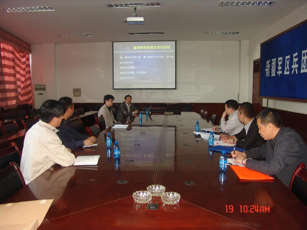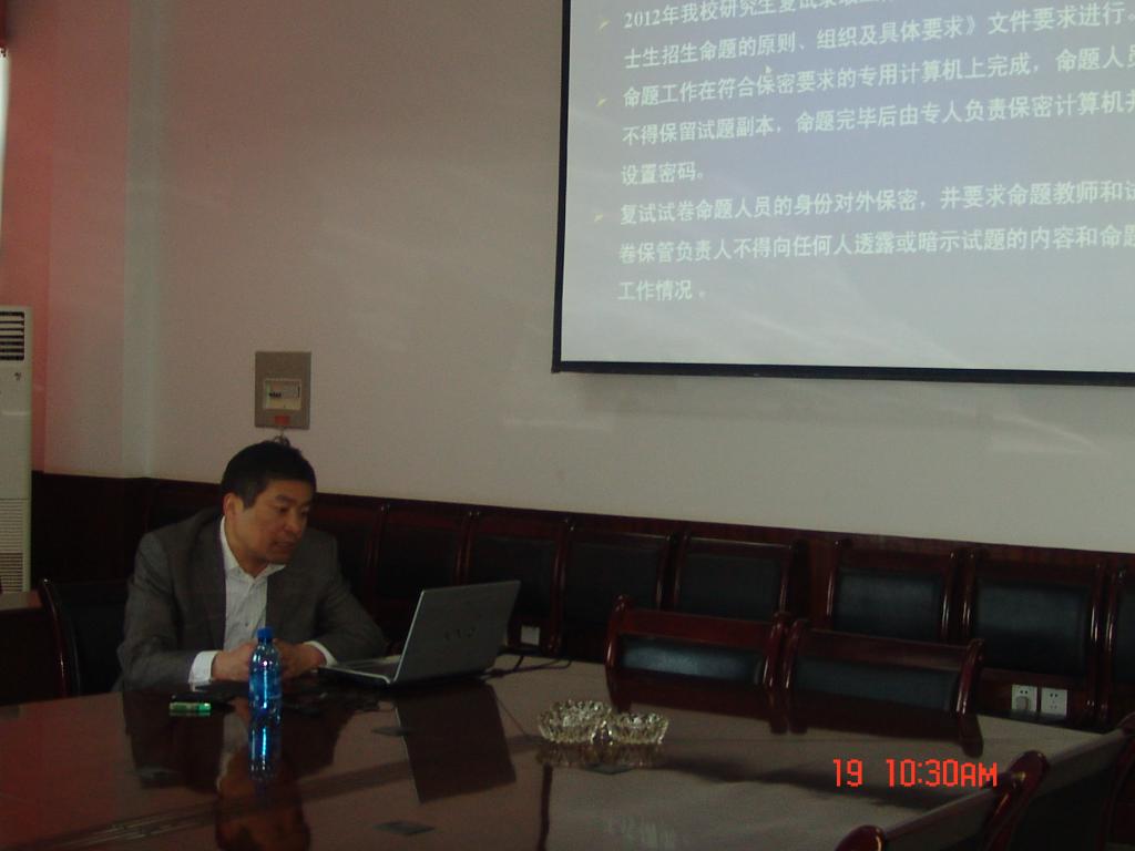 4 19 ,自治区招办艾尼瓦尔主任一行3人到我校检查指导研究生招生复试工作。研究生处处长石长青将我校2012年研究生招生、复试情况进行了汇报,详细介绍了我校在加强复试工作上采取的措施。尼瓦尔主任一行对我校的研究生招生复试情况提出了一些建议。会后在研究生处副处长郑文轩的带领下实地查看了我校的保密室及各学位点的复试情况,尼瓦尔主任一行对我校的研究生招生复试情况表示满意。