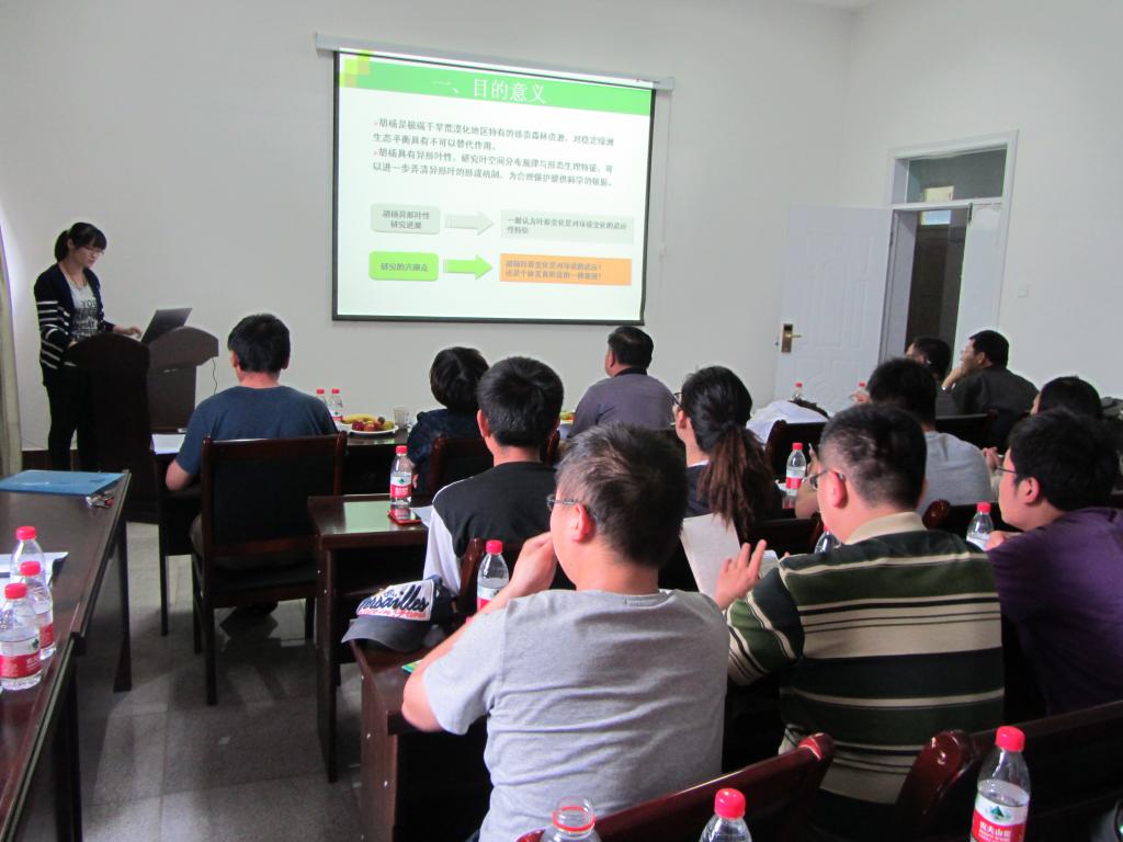 64 下午,植物科学学院果树学专业2014届硕士研究生学位论文答辩在植科楼四楼学术报告厅举行。答辩评委由高疆生教授、李志军教授、吴翠云教授、周正立教授、王新建教授、张琦教授担任,林敏娟副教授担任此次预答辩秘书,答辩会由高疆生主持,植科院相关专业研究生参加了答辩会。