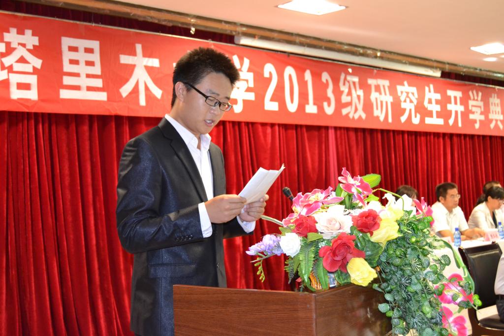 仪式上,张爱萍代表校领导向全体新同学的到来表示热烈的欢迎,并向新生提出了一些宝贵的建议:要有奋斗目标,要做好学习规划和职业规划;要术德同修,做一名积极、勤奋、诚信、扎实的研究生,充分利用学校学科资源提高科研技能力,恪守科研精神和科研道德;要处理好人际关系,弘扬胡杨精神,以积极的心态传播正能量,不仅要学习知识,更要学会做人。