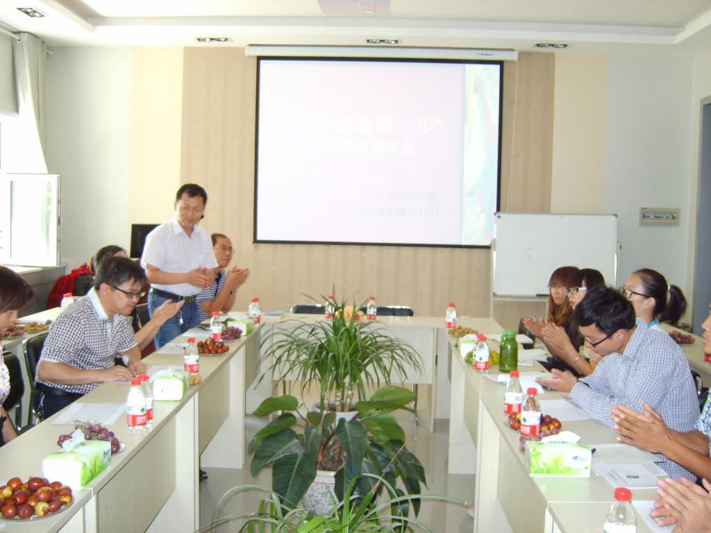 2013年9月12日下午5:00,经济与管理学院在1号教学楼南疆经济研究中心第一研讨室召开学院2013级研究生专业教育座谈会。会议由学院副院长王志彬教授主持,以“走好研途第一步”为主题,全体2013级研究生新生和2012级研究生代表、部分导师参加。