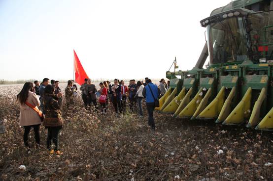 调研团重点参观了三团十四连核桃直播新建园、创业园区设施农业蔬菜大棚、科技连机采棉现场以及三团迎宾小区、东升小区、胡杨河景观3个小城镇建设现场点。研究生们通过了解第一师三团城镇化建设现状及发展趋势,掌握了第一手的城镇化发展的基本概况。