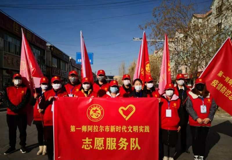 经管学院18级研究生赵丽,现在是第一师阿拉尔市疫情防控后勤保障志愿者。每天的工作是在阿拉尔各个社区和大街小巷进行防疫宣传工作,进行有关肺炎防疫宣传手册发放,相关疫情宣传告示粘贴,提醒市民少出门、戴口罩、勤洗手、多消毒。