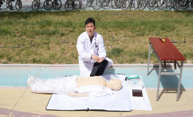 医学院孙立稳老师向学生详细介绍了火灾突发时快速自救与他救的急救知识,并演示了应急伤情处理方法、心肺复苏等医疗技能。